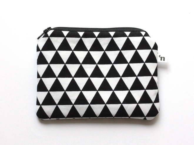 - das Täschchen Triangel aus Baumwollstoff mit geometrischem Muster. Perfekt für Kleingeld, Schmuck oder als Portemonnaie.